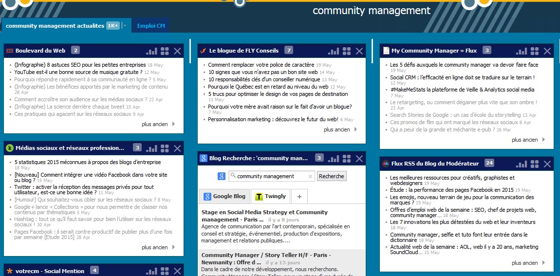 Prenez le temps de bien organiser votre tableau de bord et choisissez avec attention vos mots clés de recherche, car en réalité la valeur de Netvibes dépend entièrement du soin apporté à sa configuration. Si vous constatez au bout de quelques jours que les résultats ne sont pas satisfaisants, vous devez modifiez les critères de recherche.